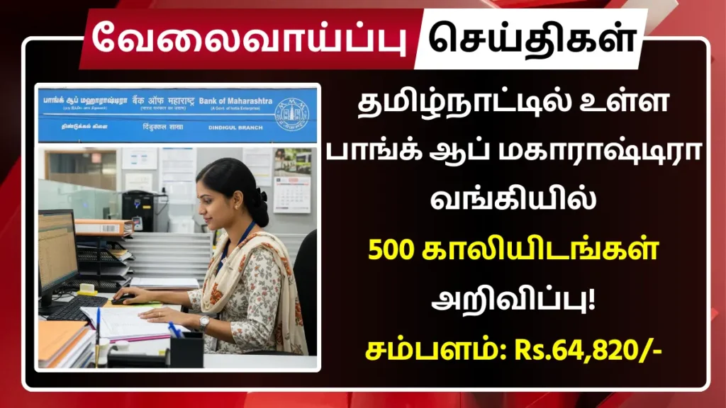 Bank of Maharashtra காலியாக உள்ள கீழ்கண்ட பணியிடங்களை நிரப்ப தகுதியான நபர்களிடமிருந்து விண்ணப்பங்கள் வரவேற்கப்படுகின்றன.