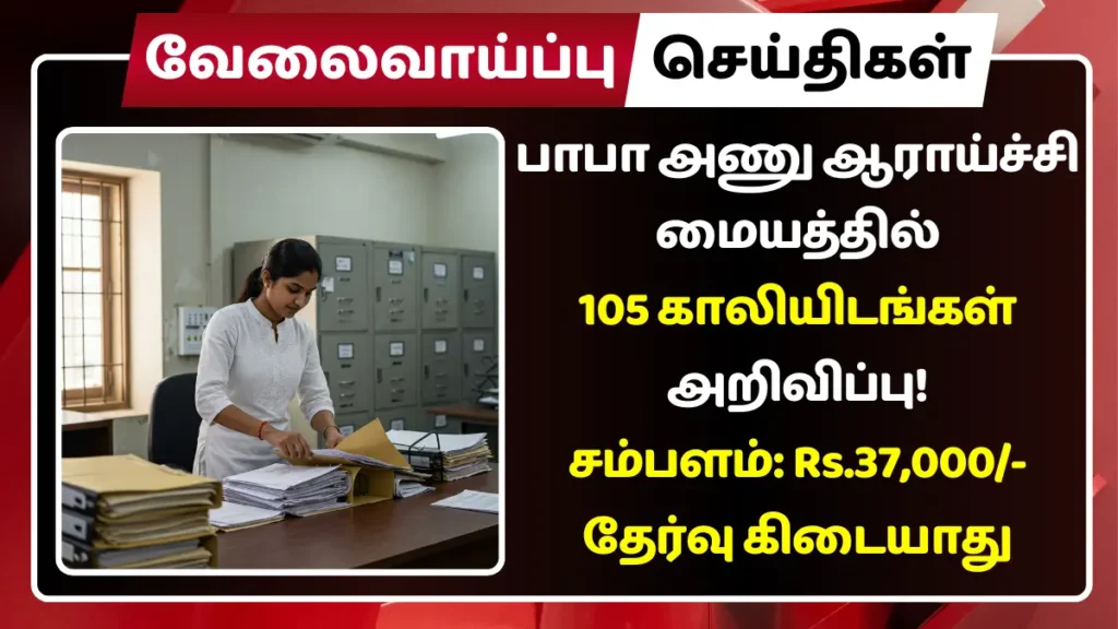 பாபா அணு ஆராய்ச்சி மையத்தில் காலியாக உள்ள கீழ்கண்ட பணியிடங்களை நிரப்ப தகுதியான நபர்களிடமிருந்து விண்ணப்பங்கள் வரவேற்கப்படுகின்றன.