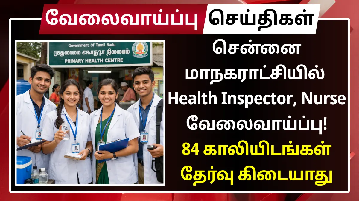 சென்னை மாநகராட்சியில் காலியாக உள்ள கீழ்காணும் பணியிடங்களை நிரப்ப தகுதியான நபர்களிடமிருந்து விண்ணப்பங்கள் வரவேற்கப்படுகின்றன.