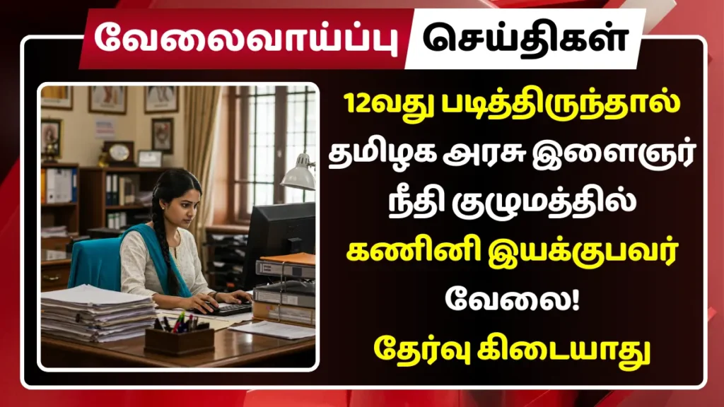 கல்வி தகுதி: 12ம் வகுப்பு தேர்ச்சி பெற்றிருக்க வேண்டும். தட்டச்சு / தமிழ் மற்றும் ஆங்கிலம் முதுநிலை தேர்ச்சி பெற்றிருக்க வேண்டும். கணினி அறிவு (சான்றிதழ் பெற்றிருக்க வேண்டும்).
