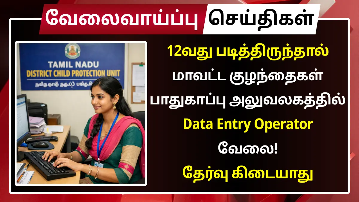 குழந்தைகள் நலன் மற்றும் சிறப்பு சேவைகள் துறையின் கீழ் மிஷன் வாட்ஸ் சல்யா திட்டத்தின் அடிப்படையில் செயல்பட்டு வரும் மாவட்ட குழந்தைகள் பாதுகாப்பு அலகில் காலியாக உள்ள உதவியாளருடன் இணைந்த கணினி இயக்குபவர் பணியிடங்களை நிரப்ப தகுதியான நபர்களிடமிருந்து விண்ணப்பங்கள் வரவேற்கப்படுகின்றன.