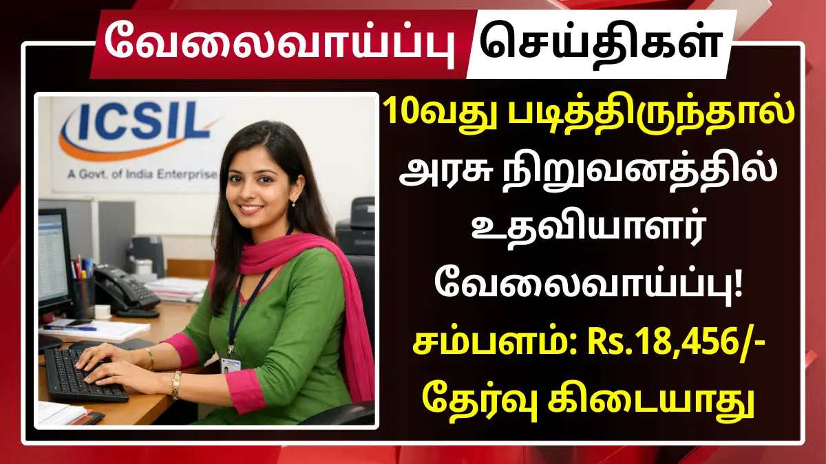 Intelligent Communication Systems India Ltd. (ICSIL) நிறுவனத்தில் காலியாக உள்ள Multi Tasking Staff (MTS) மற்றும் Pharmacist பணியிடங்களை நிரப்ப தகுதியான நபர்களிடமிருந்து விண்ணப்பங்கள் வரவேற்கப்படுகின்றன.