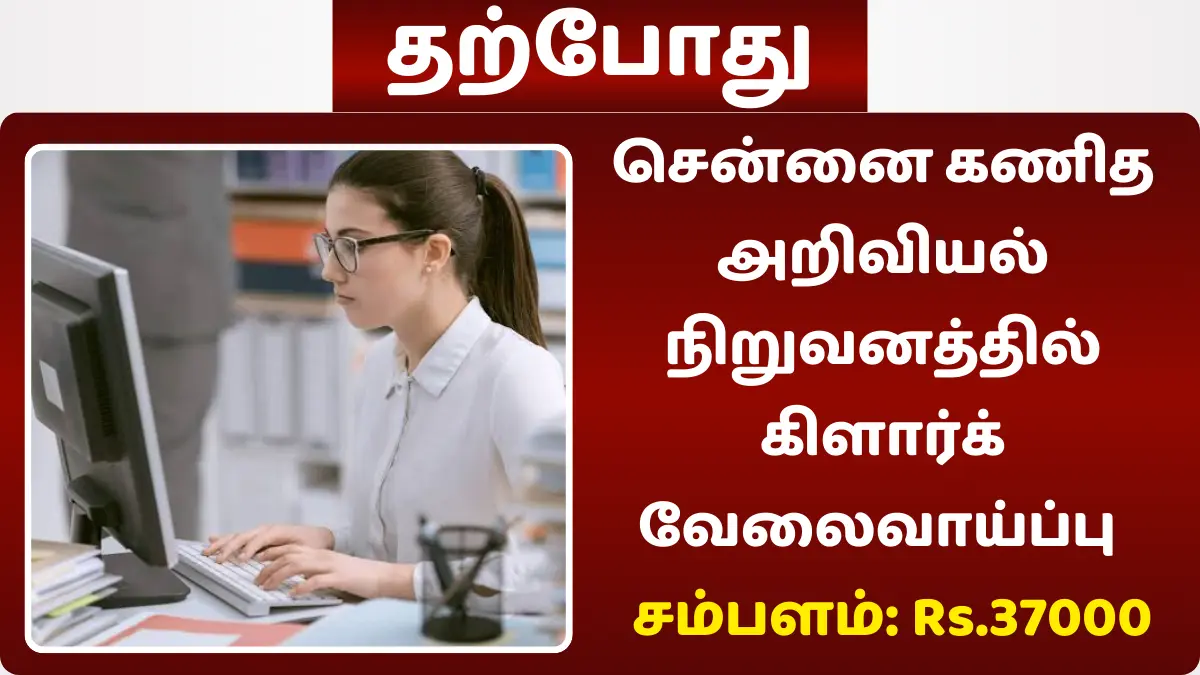 சென்னை கணித அறிவியல் நிறுவனத்தில் காலியாக உள்ள Project Assistant, Research Associate, Project Associate, Project Scientific Officer B, Clerk A, Administrative Trainee பணியிடங்களை நிரப்ப தகுதியான நபர்களிடமிருந்து விண்ணப்பங்கள் வரவேற்கப்படுகின்றன.