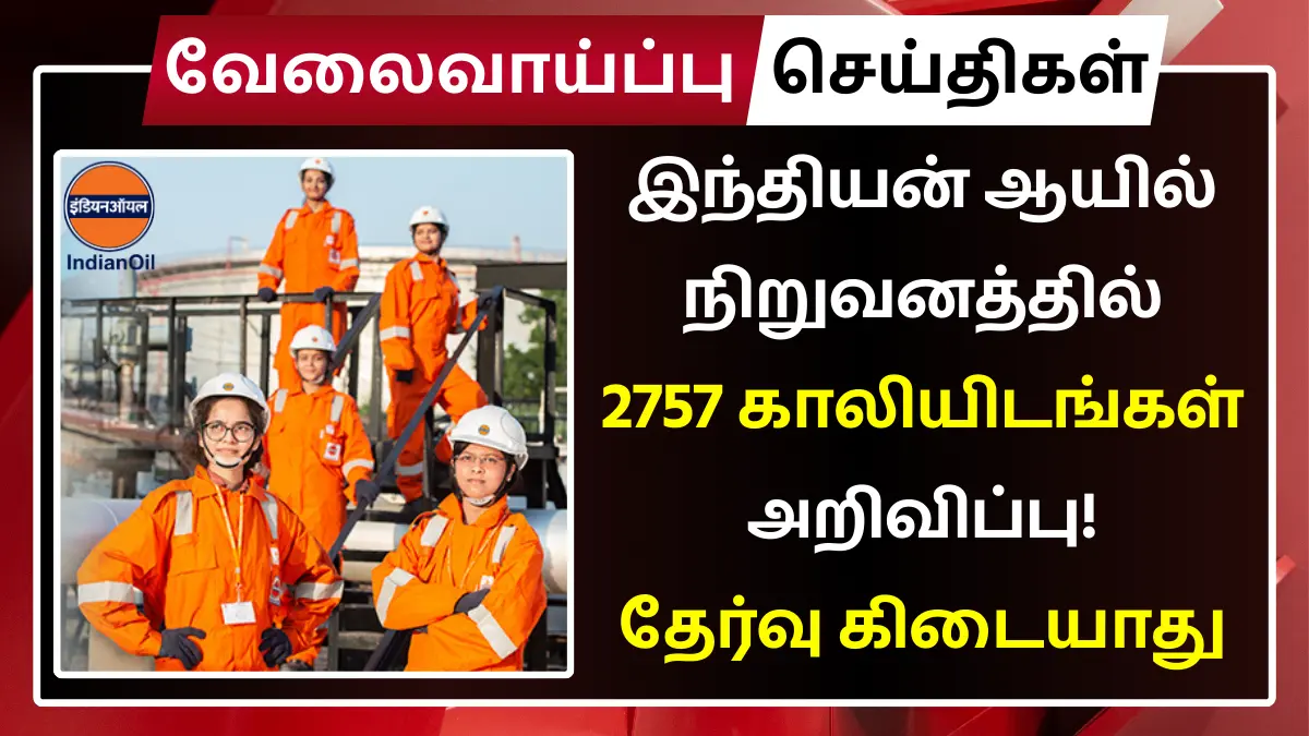 இந்தியன் ஆயில் நிறுவனத்தில் 2757 காலியிடங்கள் அறிவிப்பு! தேர்வு கிடையாது | தகுதி: 12th, Diploma, Degree