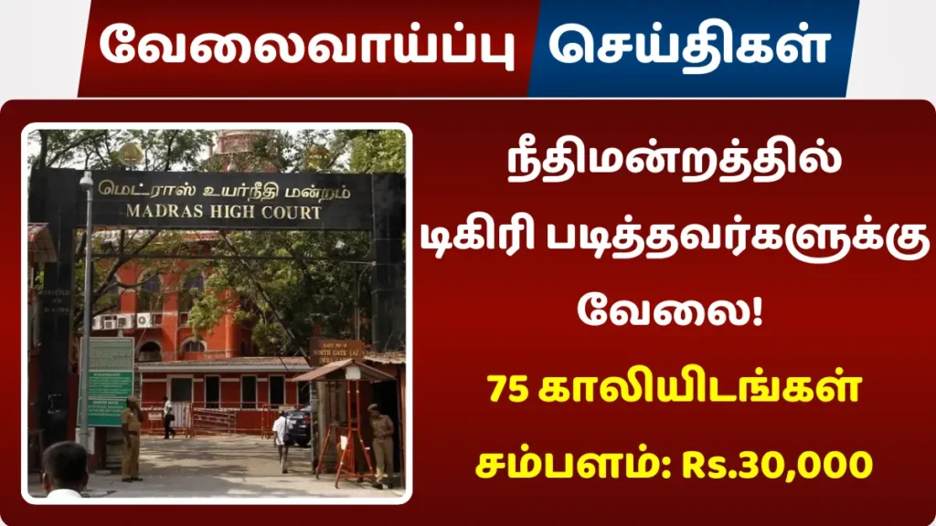 சென்னை உயர் நீதிமன்றத்தில் காலியாக உள்ள 75 VC HOST (Technical) பணியிடங்களை நிரப்ப தகுதியான நபர்களிடமிருந்து விண்ணப்பங்கள் வரவேற்கப்படுகின்றன.