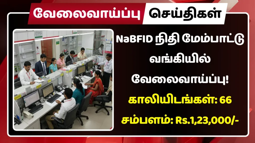 NaBFID வங்கியில் காலியாக உள்ள கீழ்கண்ட பணியிடங்களை நிரப்ப தகுதியான நபர்களிடமிருந்து விண்ணப்பங்கள் வரவேற்கப்படுகின்றன.