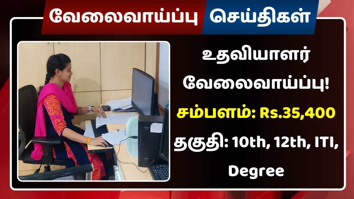 உதவியாளர் வேலைவாய்ப்பு! சம்பளம்: Rs.35,400 | தகுதி: 10th, 12th, ITI, Degree