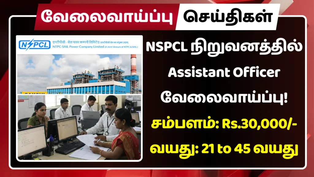 NTPC – SAIL Power Company Limited காலியாக உள்ள Assistant Officer பணியிடங்களை நிரப்ப அறிவிப்பு வெளியிட்டுள்ளது.