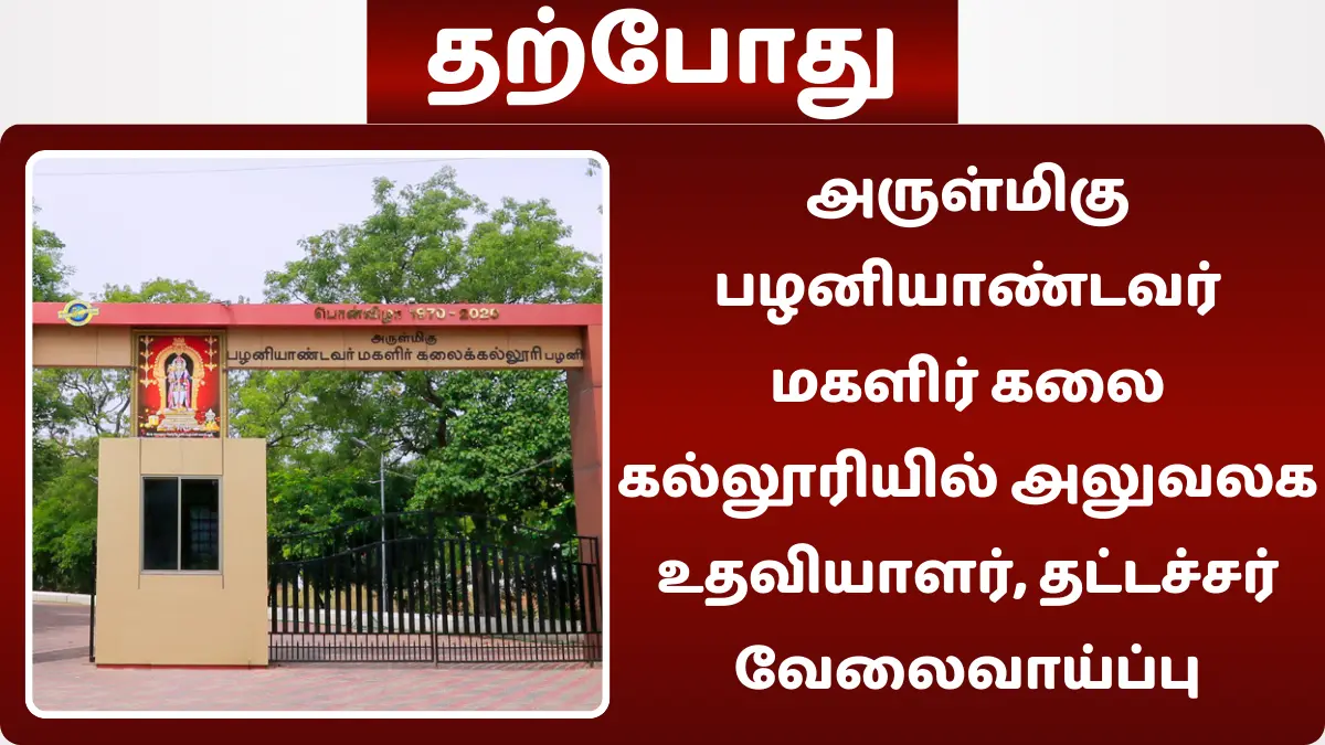 அருள்மிகு பழனியாண்டவர் மகளிர் கலை கல்லூரியில் அலுவலக உதவியாளர், தட்டச்சர் வேலைவாய்ப்பு