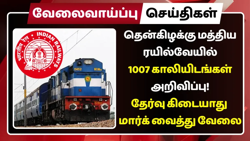 தென்கிழக்கு மத்திய ரயில்வேயில் காலியாக உள்ள 1007 பணியிடங்களை நிரப்ப தகுதியான நபர்களிடமிருந்து விண்ணப்பங்கள் வரவேற்கப்படுகின்றன.