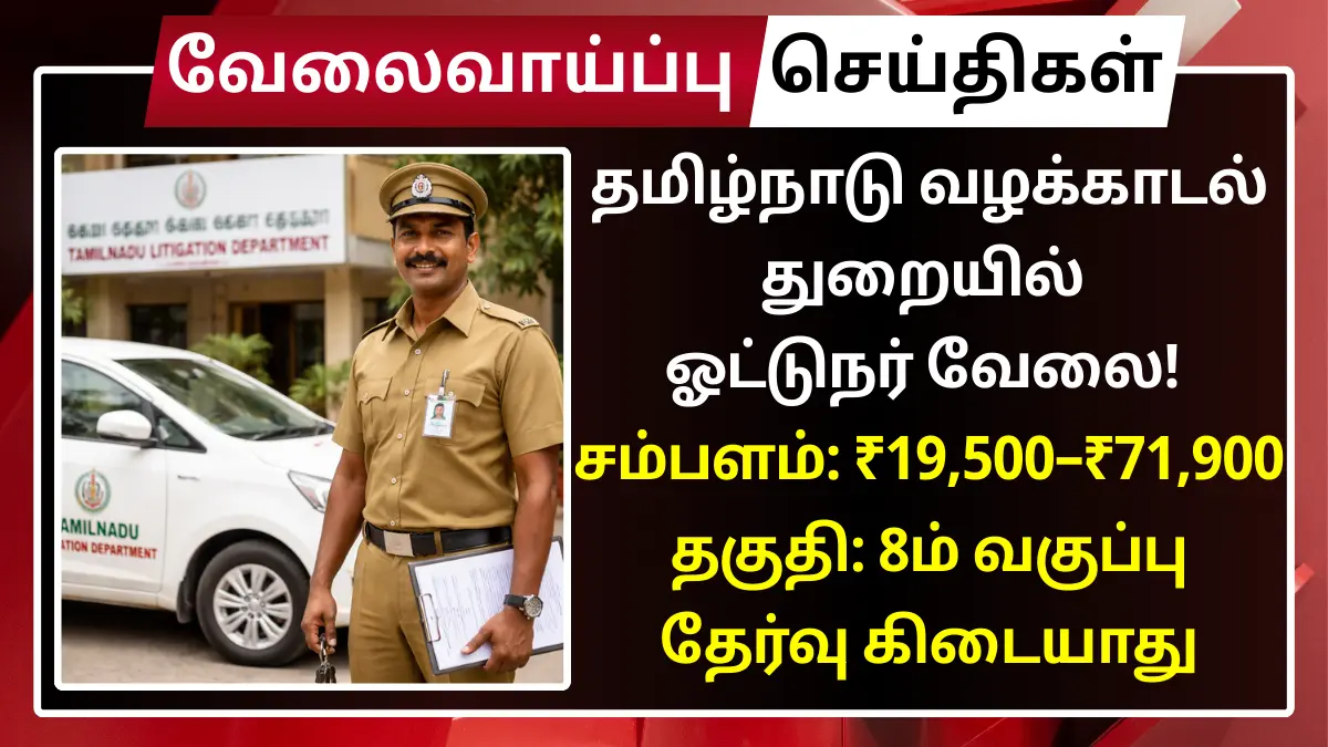தமிழ்நாடு வழக்காடல் துறையில் ஓட்டுநர் வேலை! தகுதி: 8ம் வகுப்பு | சம்பளம்: Rs.19,500