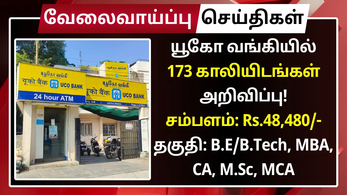 யூகோ வங்கியில் 173 காலியிடங்கள் அறிவிப்பு! சம்பளம்: Rs.48,480